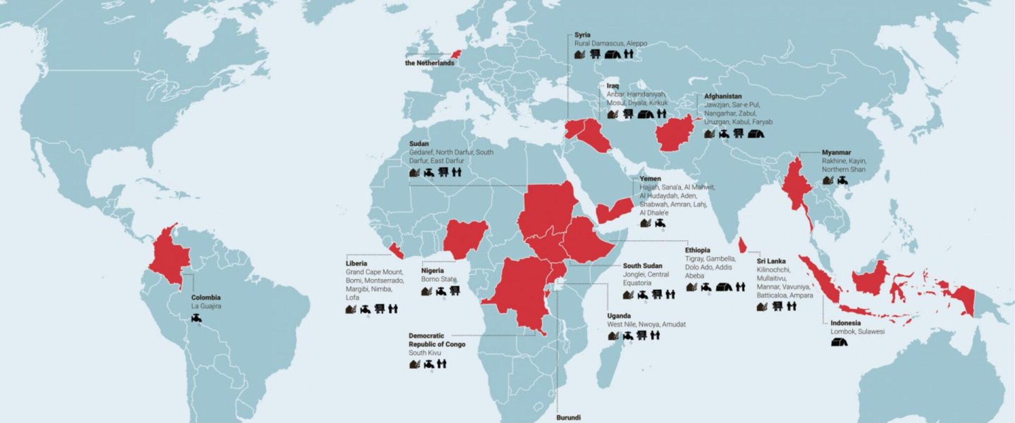 November 9, 2020: overview of our emergency response worldwide. ZOA works with people who have to deal with conflict, displacement en food insecurity. Support is needed more than ever. Click on the map to see a short overview of the situation in the countries we work in.
