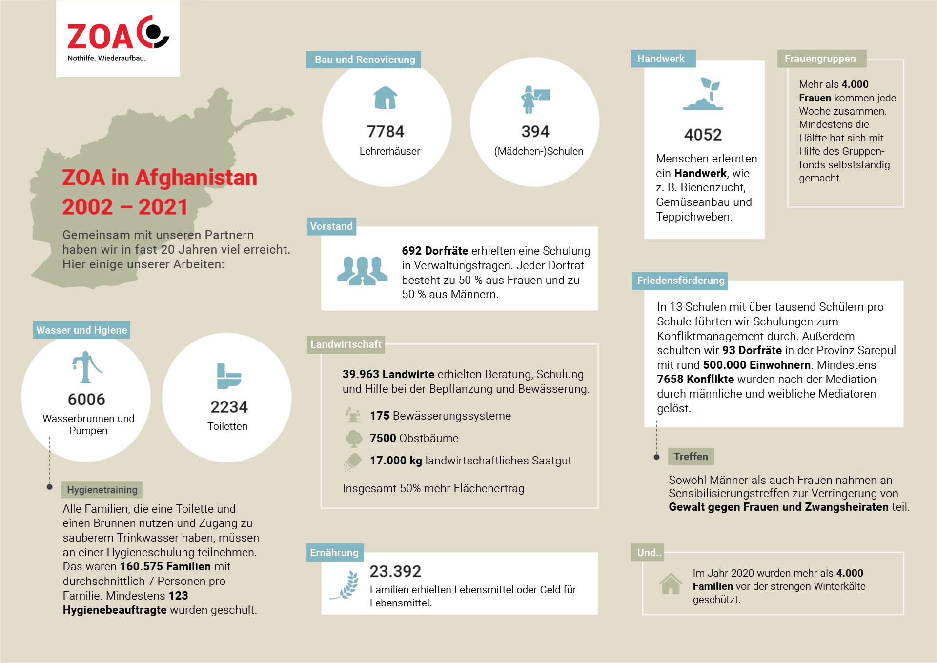 Die folgende Übersicht zeigt, was ZOA alles in Afghanistan erreichen konnte: